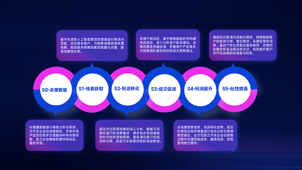 通过拓宽潜在客户来源、、、优化线索分配并提高到店转化率,,,,以增强销售效率。。。。同时,,,利用线索数据不断优化分析模型,,,有效提升转化率,,扩大营销影响力。。。。